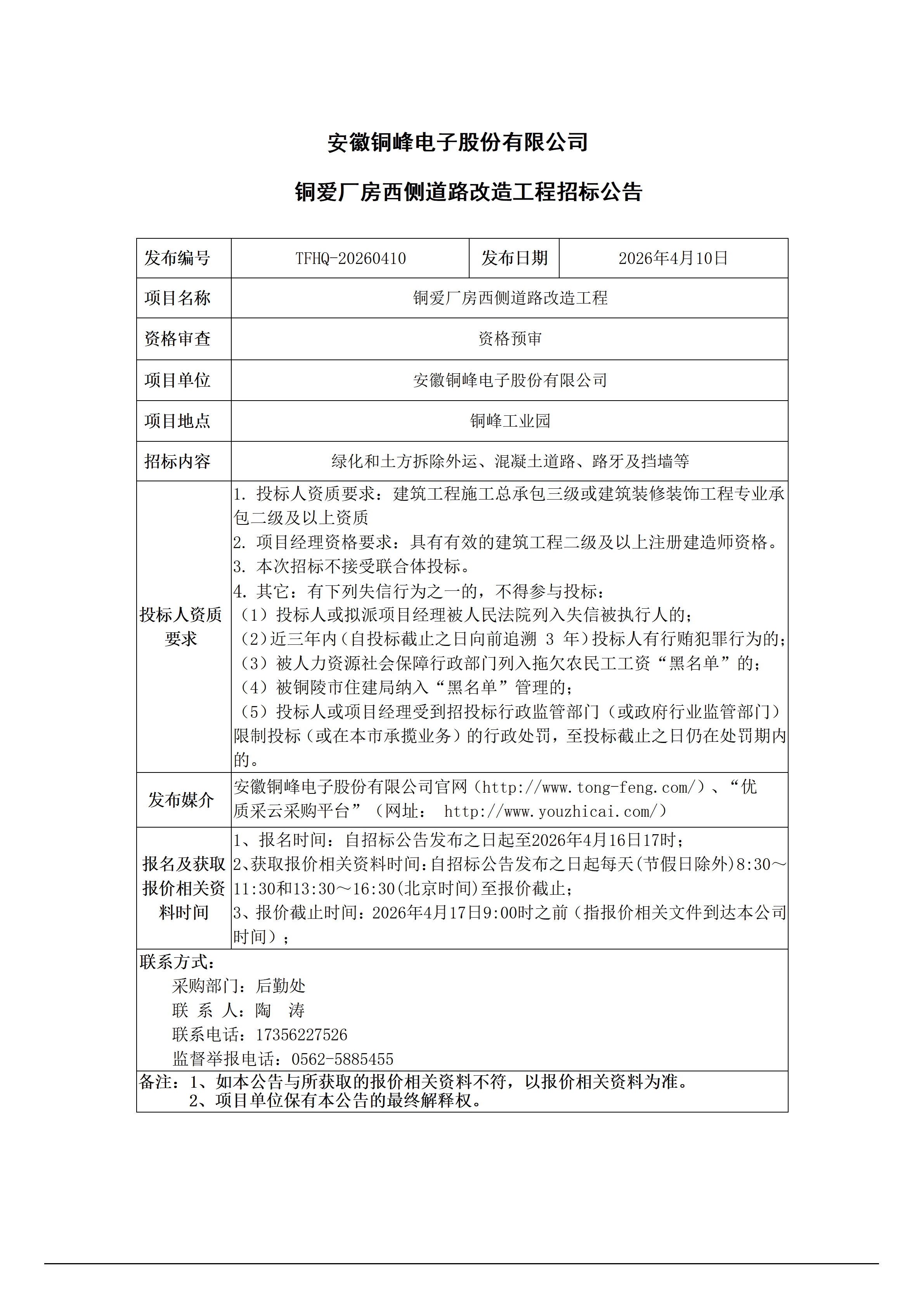 01-安徽銅峰電子股份有限公司 (銅愛廠房西側(cè)道路改造-- 招標(biāo)公告)_01