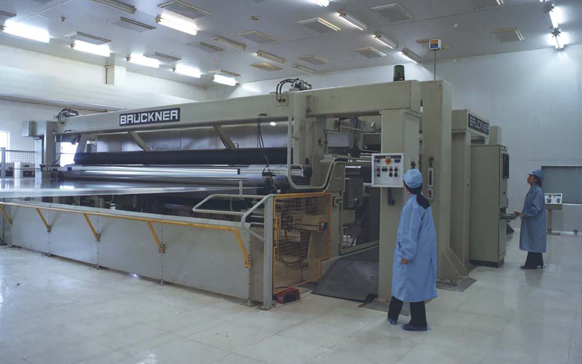 銅峰“老一線”于1989年建成投產(chǎn)。上世紀(jì)80年代,當(dāng)時(shí)國(guó)內(nèi)電容器用聚丙烯膜幾乎完全依賴進(jìn)口,嚴(yán)重制約了我國(guó)電容器等相關(guān)產(chǎn)業(yè)的發(fā)展。銅峰公司前身銅陵市無(wú)線電元件二廠積極響應(yīng)國(guó)家需求,決定從國(guó)外引進(jìn)雙向拉伸電容器用聚丙烯膜生產(chǎn)線。1985年項(xiàng)目啟動(dòng),經(jīng)過(guò)一系列籌備工作,1986年獲得國(guó)家計(jì)委批準(zhǔn)立項(xiàng),并被列入國(guó)家 “七五” 機(jī)械電子工業(yè)重點(diǎn)技改項(xiàng)目。1988年,主線和相關(guān)輔助設(shè)備成功引進(jìn)。經(jīng)過(guò)一年多的緊張建設(shè),1989年生產(chǎn)線正式投產(chǎn)?!袄弦痪€”的建成投產(chǎn),是銅峰發(fā)展史上具有重要意義的轉(zhuǎn)折點(diǎn)。該線加速了銅峰公司產(chǎn)品結(jié)構(gòu)調(diào)整和轉(zhuǎn)型步伐,并由此形成了全國(guó)唯一的“電工三膜”(電容薄膜、金屬化膜和薄膜電容器)一條龍的生產(chǎn)格局,使企業(yè)的經(jīng)濟(jì)規(guī)模和技術(shù)水平躍上一個(gè)新臺(tái)階。